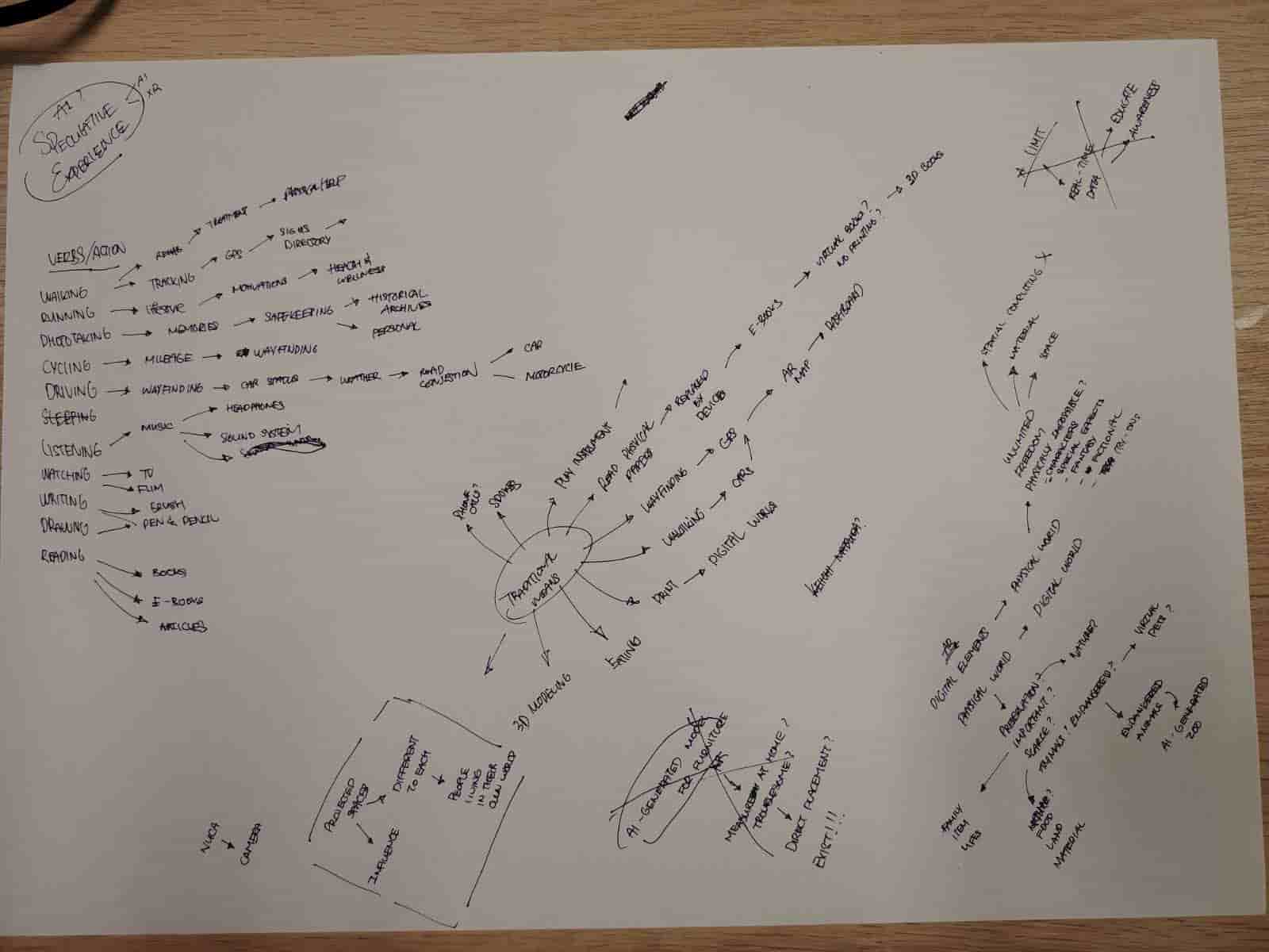 To help me to start with new ideas, I started listing out the possible areas that I could speculate. As I’ve somewhat a goal to move towards, now it’s to identify the focus on the subject. On the paper I wrote down some action words that could help explore the aspect of experience and try to figure out the different activities that I could speculate. Not long later, I hit the wall with the amount of things to speculate.