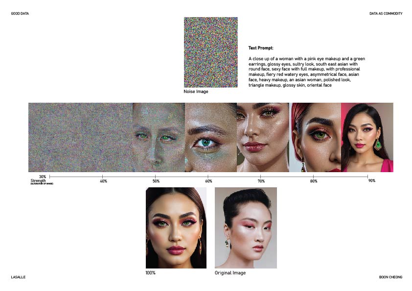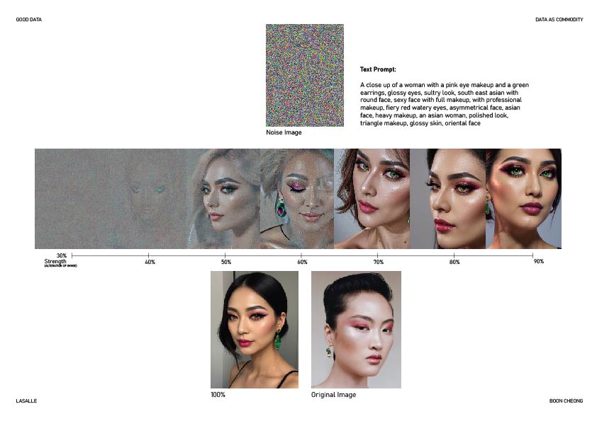 The result from this time was rather drastic, where the face direction is different from the original image and there’s difference in ethnicity as well. However, at 90% strength, it had a closer resemblance to the original image. With 2 attempts at 100% strength, it seemed that the background were similiar and the framing was close as well.