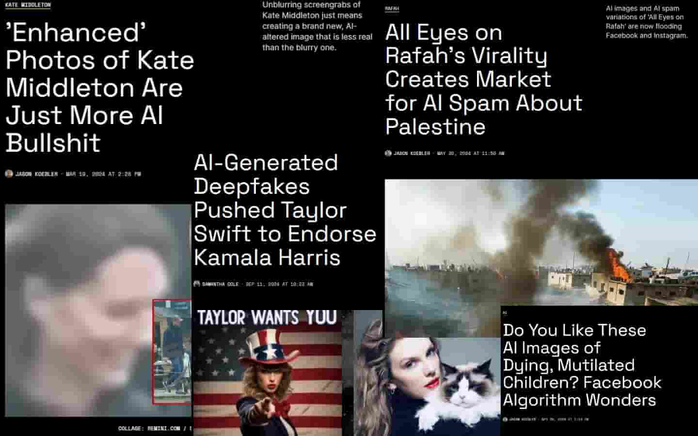 After being introduced to 404 podcast and Kate Crawford who researches in AI, I spent quite a few days reading the different articles and research papers that could better narrow down the issue that I'm targetting. I tried looking at existing articles as well and something prominent stood out to me was that AI generated content seems to be highlighted as an issue.