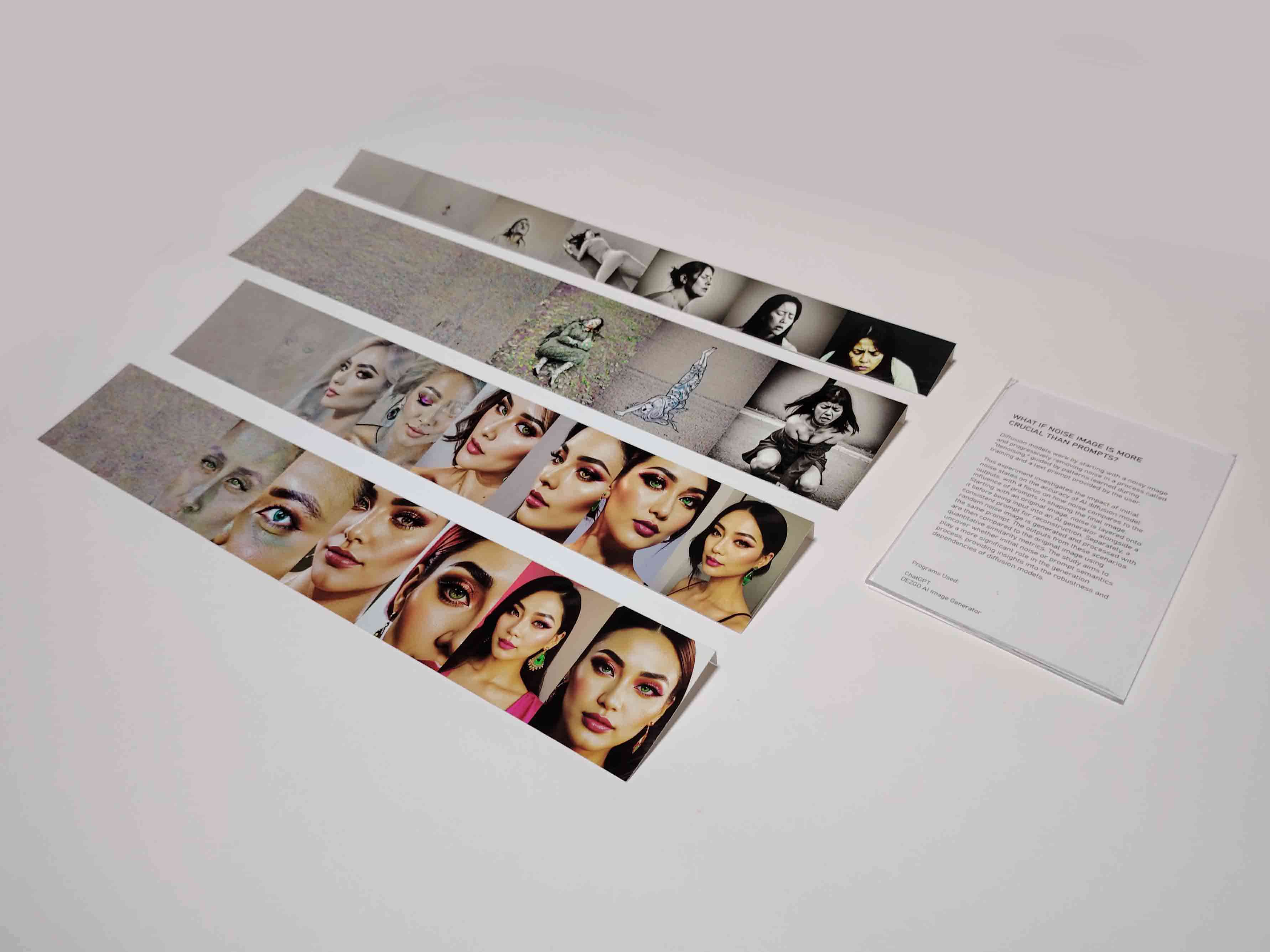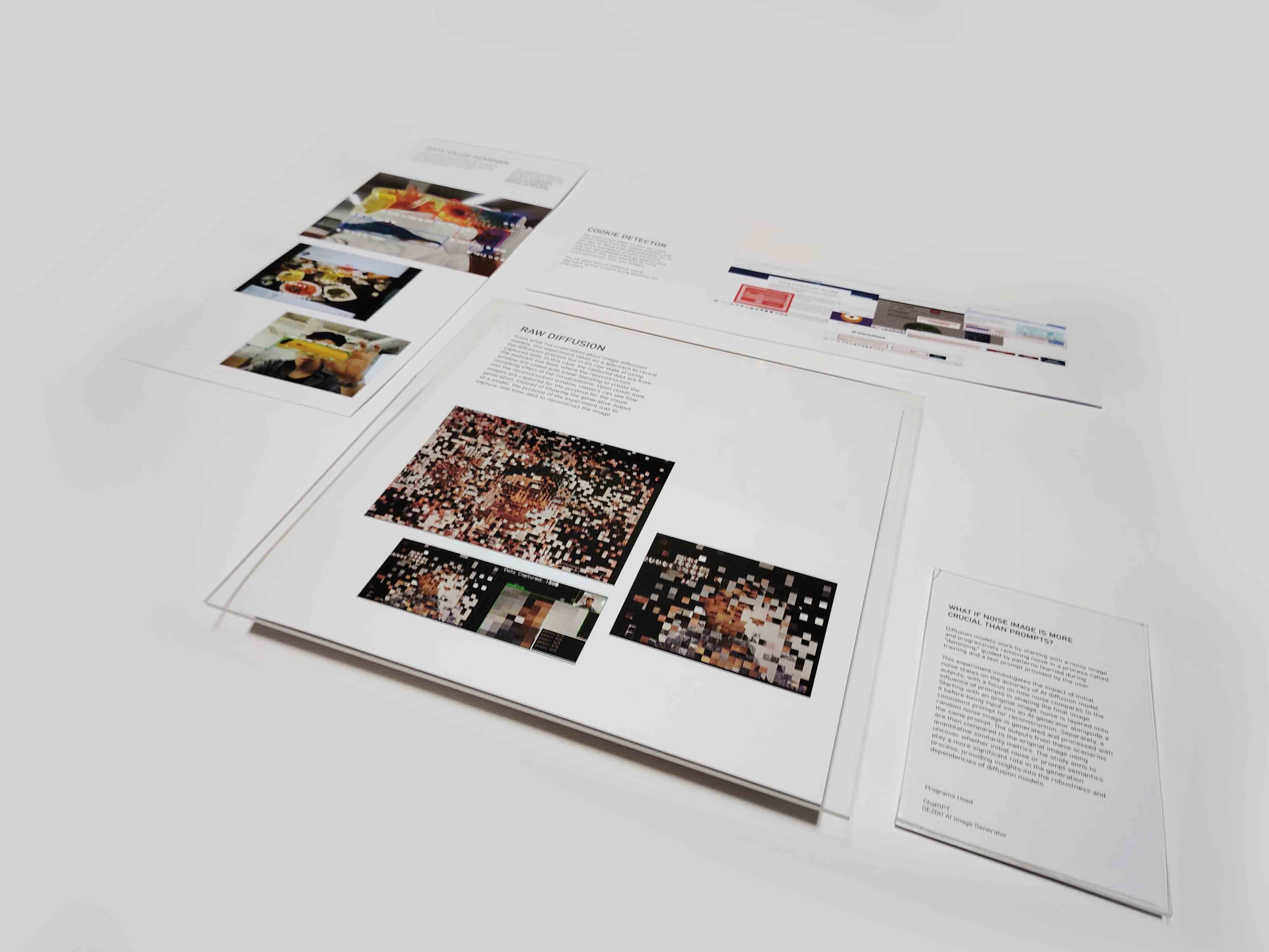 For the curation, I decided to present my experiments as physical prints, taking into account advice from Andreas on incorporating acrylic elements to enhance the professionalism of the work. This approach not only adds a refined touch to the presentation but also provides an opportunity for me to revisit and engage with physical printing processes, creating a more tactile and impactful experience for the audience.