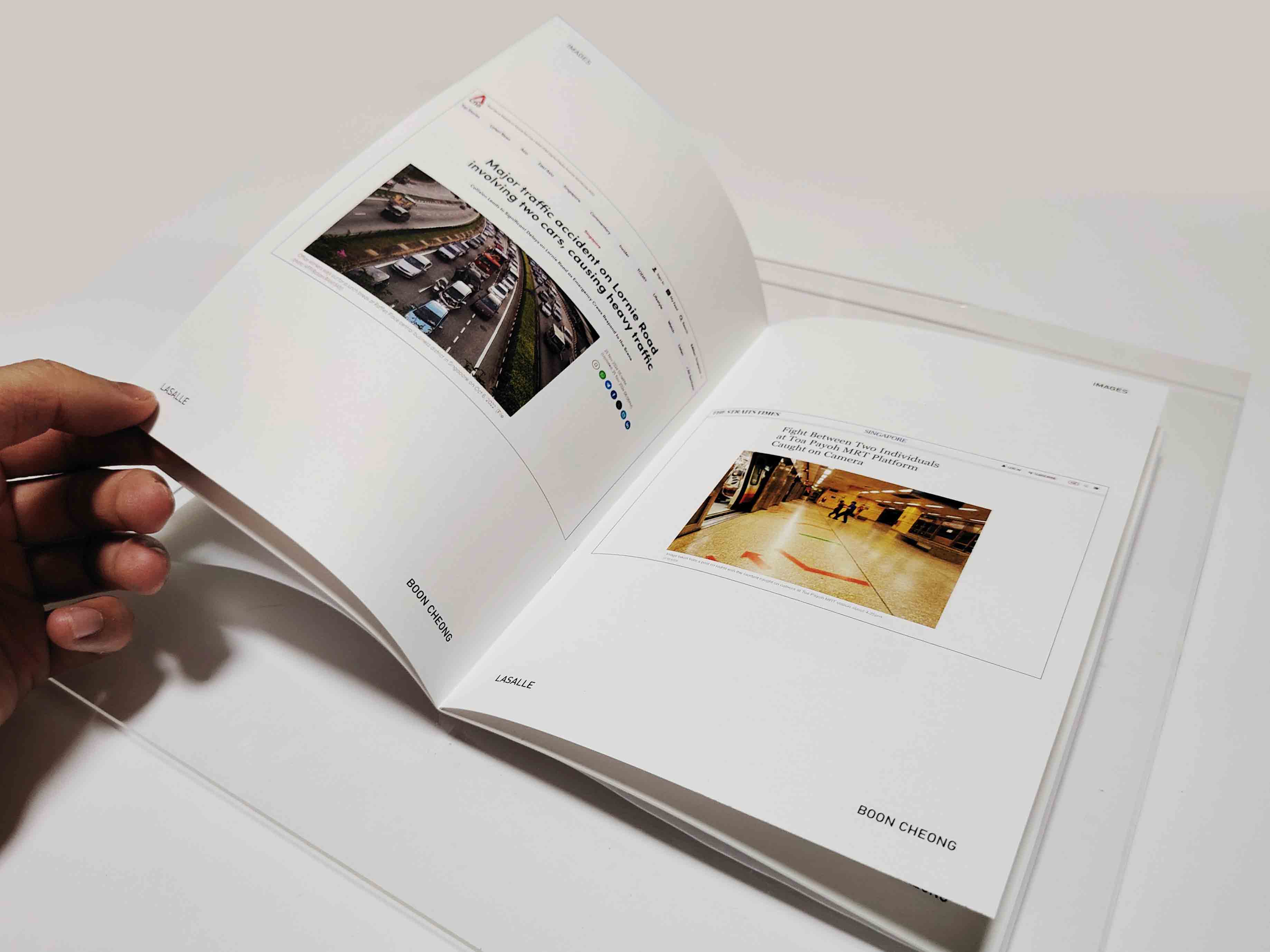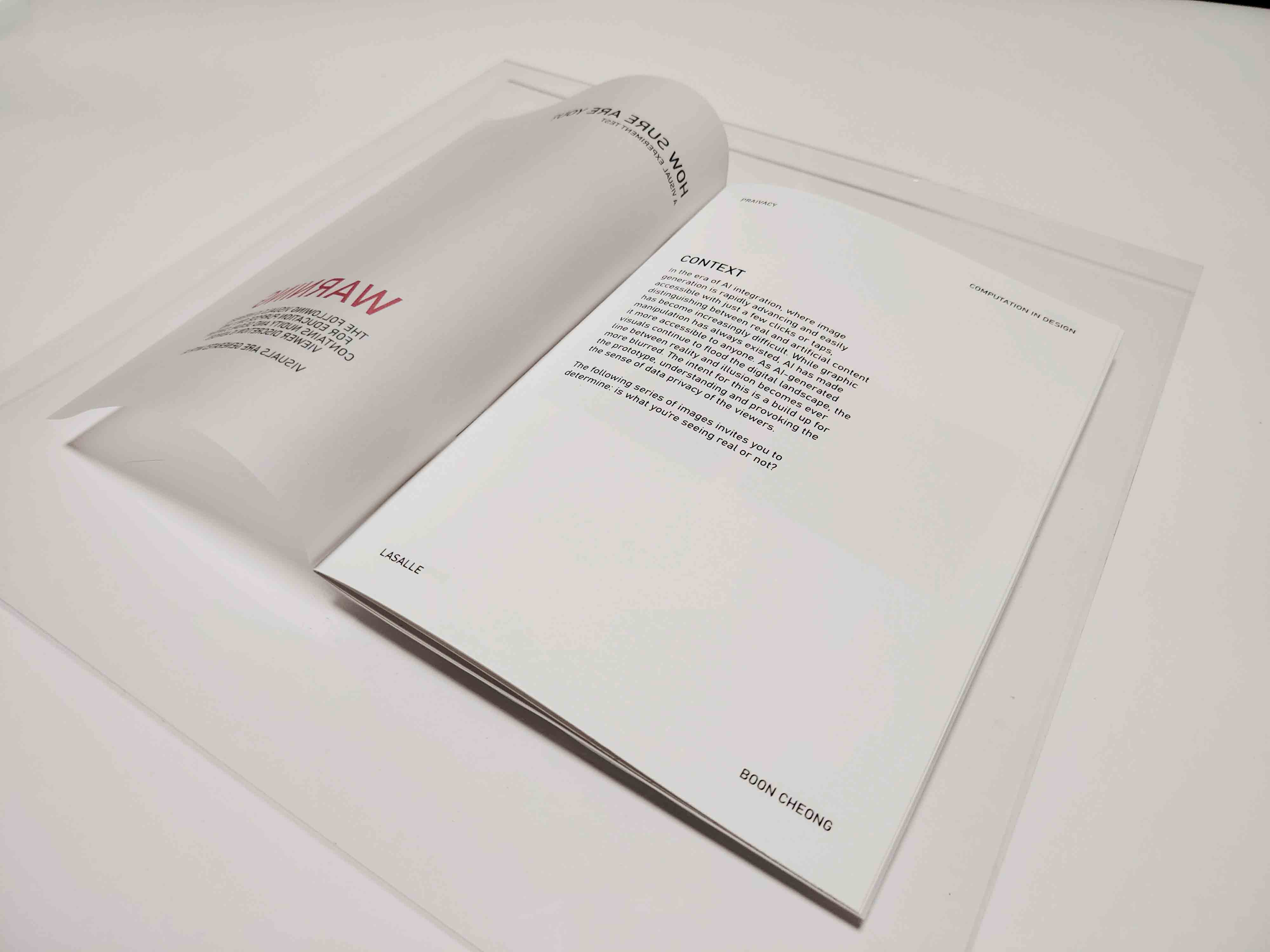 The publication was designed with a blurring effect on the cover, incorporating tracing paper as the cover to create a layered and obscured aesthetic. Using the materials I had on hand, I created a mock-up of the curation at home to visualize how the pieces could be arranged on a table for display. This allowed me to experiment with the layout and refine the presentation to ensure it effectively conveys the concept and engages the audience.