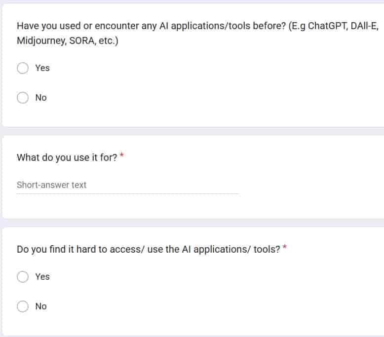 As I proceed with the design of the exam papers, I was then incline to incorporate a survey to emphasize the need to raise awareness on the issue. Through a quantitative data analysis, I was hoping to evaluate the lack of awareness among the younger generation, proving a point to my research objective. Therefore, I set up a Google Form which allows people respond and submit anonymously. The Google Form was then published on the Reddit forums as the source for my target audience. The reddit community that was chosen for the survey are mainly the groups involving Gen Alpha, Gen-Z, Milinials.