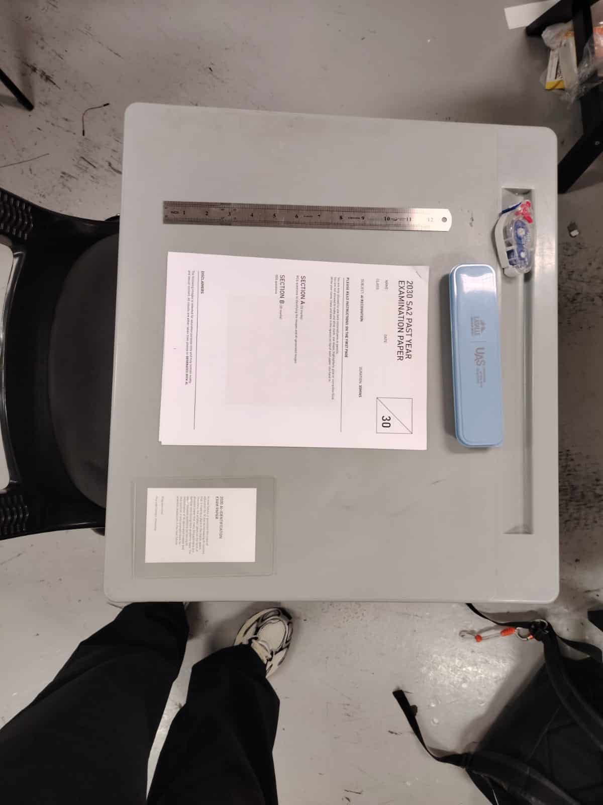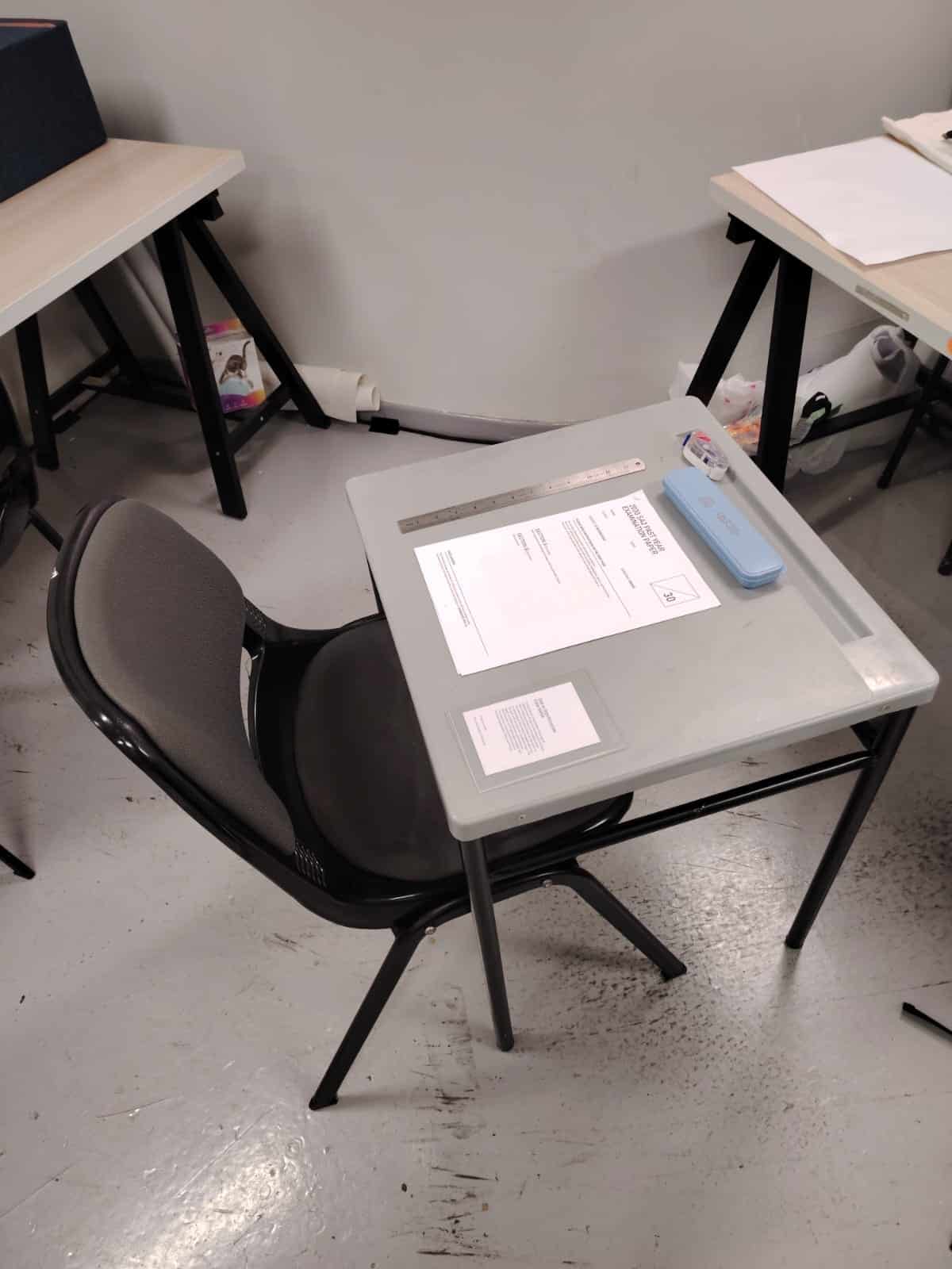 So the intention was to create a an experience for people to walk through the space and experience the work. The experience involves the nostalgia of students taking test in their academic days, therefore I tried to recreate the school setting with the school desk that we're familiar with. With the prior user testing that was done, it also showed how participants were making guesses in responding to the test paper. Hence, I intend to incorporate a confidence evaluator with the use of ComputerVision to detect facial expression, this would also allow me to relook into how the ESP32-CAM can be reused for the project.