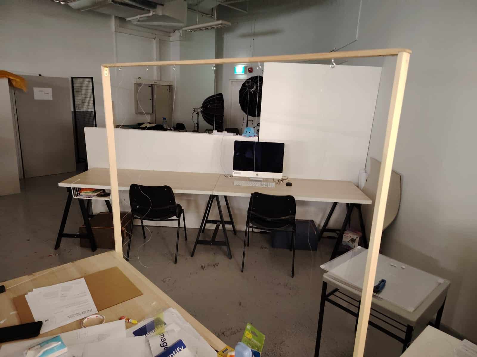 Due to some safety concern with the hanging over the vents, I was told to remove the current set-up and look for alternative ways to display the work. However, it was not unexpected when I was doing the set-up, hence without much hesitation, I decided to proceed with constructing my own hanging system.