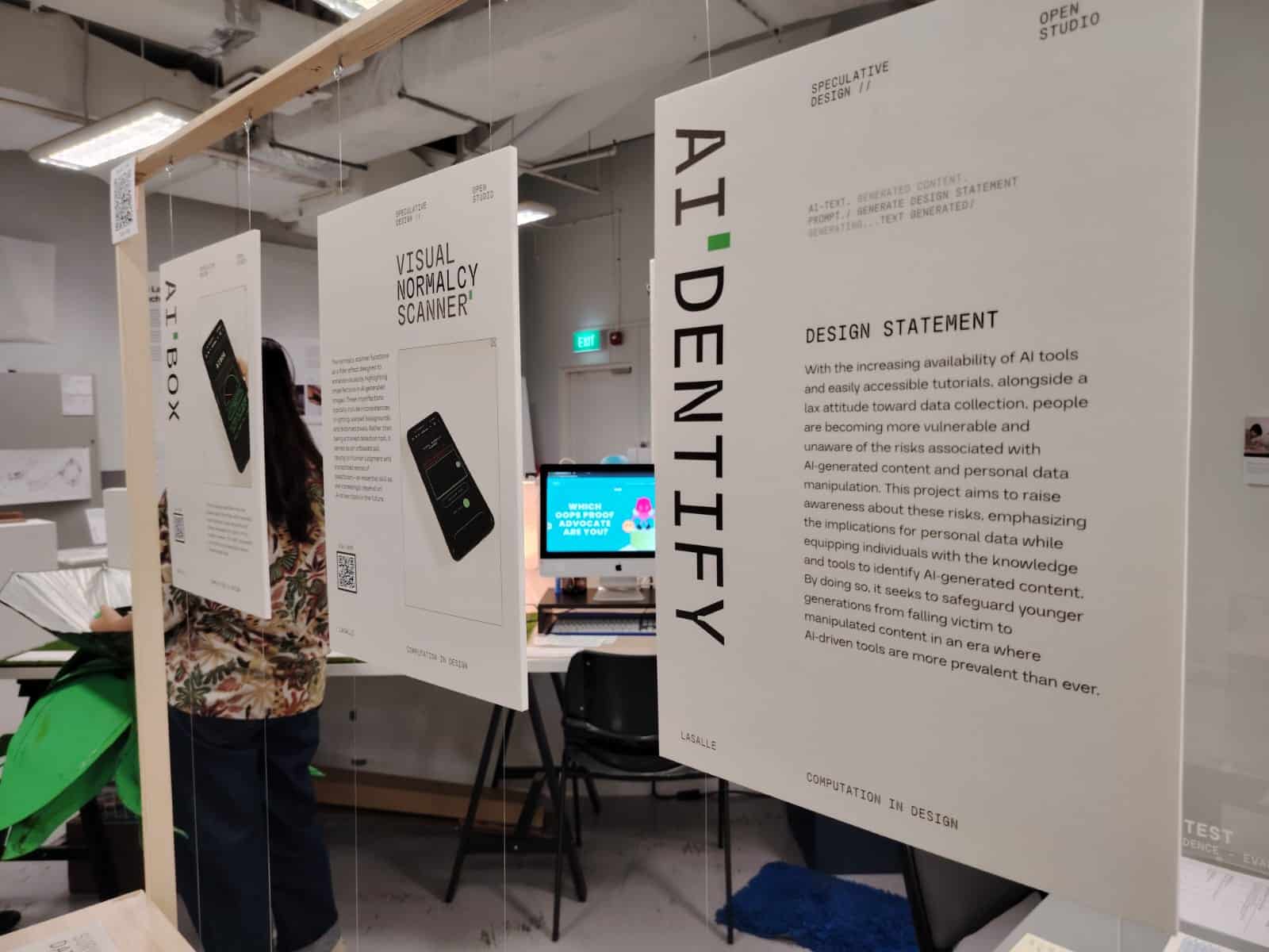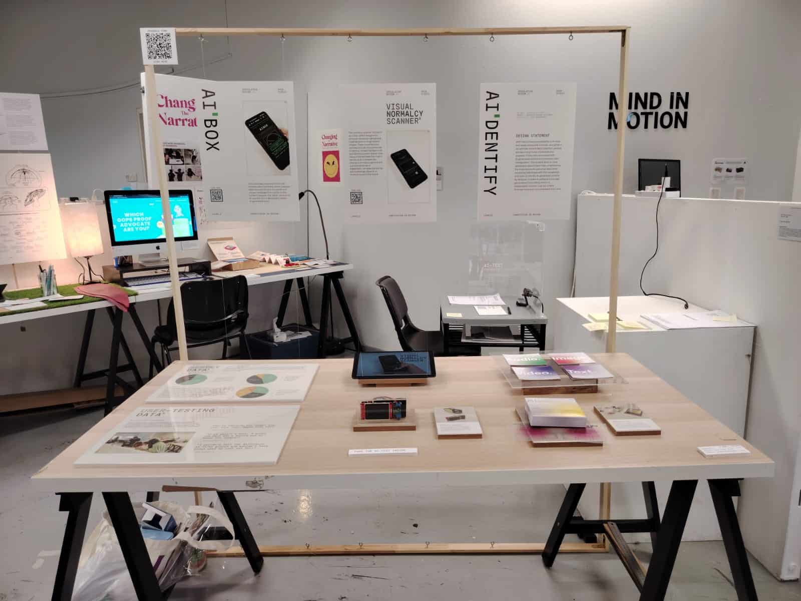 With all the necessary prints and items ready, I set up the final display. I made sure the items are secured and placed nicely before going through again to see from the point of a visitor. The only missing item will be tablet that will be playing the videos on loop. I've included a google form where people can leave their response and feedback to their experience with my project through a QR code placed the top left of the structure.