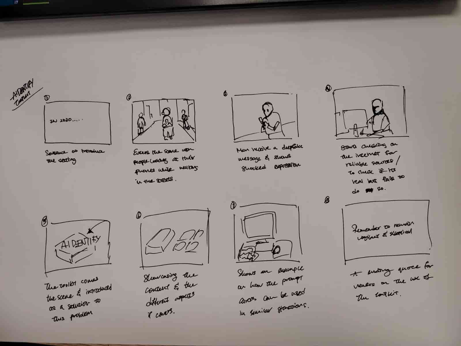 The following is the initial storyboard I developed, which I then used with Wan2.1 to generate several of the scenes. This approach created an interesting and ironic relationship between the artifact—designed to address the challenges of AI-generated content—and the use of AI itself to narrate and visualize the story and product showcase.