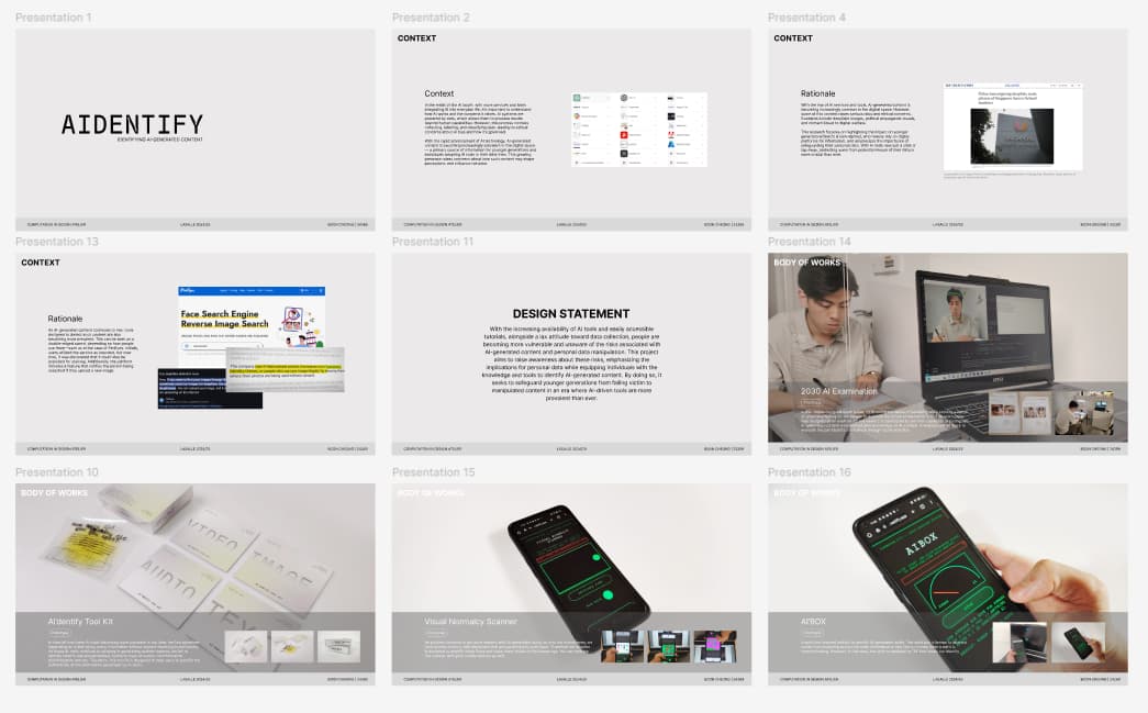 Similarly to the end of Semester 1, a final slide deck was prepared to accompany the presentation. Its purpose was to ensure the markers had a comprehensive and detailed understanding of the project, filling in any gaps that might not have been fully covered during the live presentation. The slide deck acted as both a supplementary document and a means to reinforce the project’s critical considerations, design evolution, technical decisions, and overall conceptual framing.