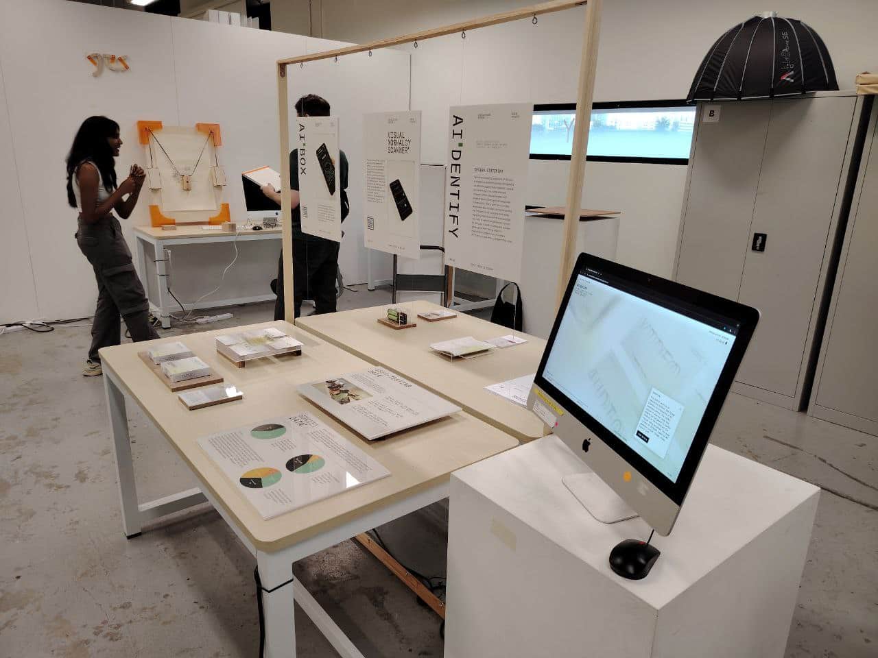 Towards the back of the table, a section was dedicated to showcasing the failed attempts and the Body of Works publication, offering deeper technical insights for those interested in a more detailed understanding. Additionally, physical copies of the user testing papers were displayed, providing tangible proof of the engagement and responses gathered. This structure was intentionally designed to guide the audience through the thought process behind the project, reinforcing transparency and critical reflection at every stage.