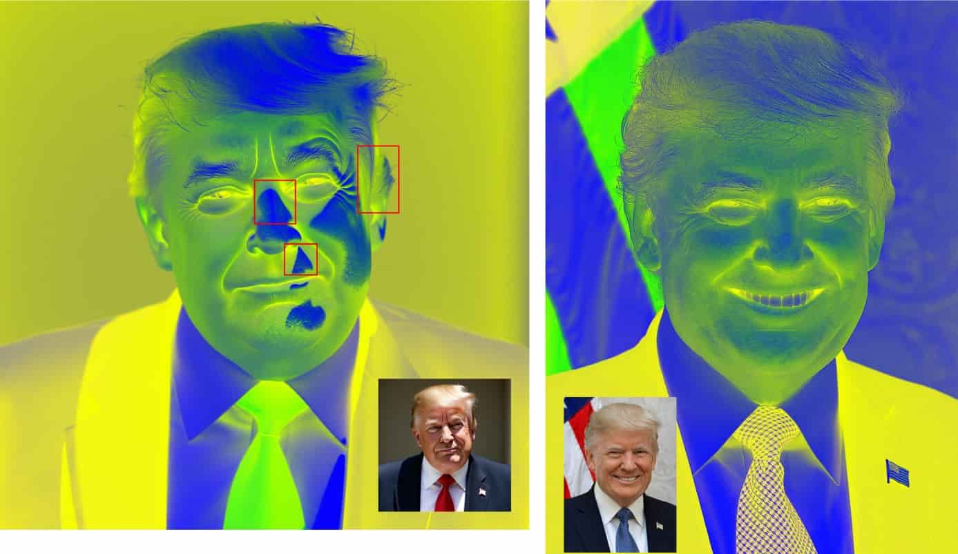 With the idea of introducing certain filters, I remembered Photoshop having the different blending effects for layers, which made me curious how it could bring out the imperfections of AI-generated images. I tried experimenting the different effects and to find that using the difference effect might be the most effective. However, the choice of color chosed for the difference blending was rather experimental as compared to the other colors. The choice of color was yellow and compared to the other colors for the blending effect, it was more prominent for me to spot the artifacts on AI-generated images. However, I believe there's a need to look into this matter more.