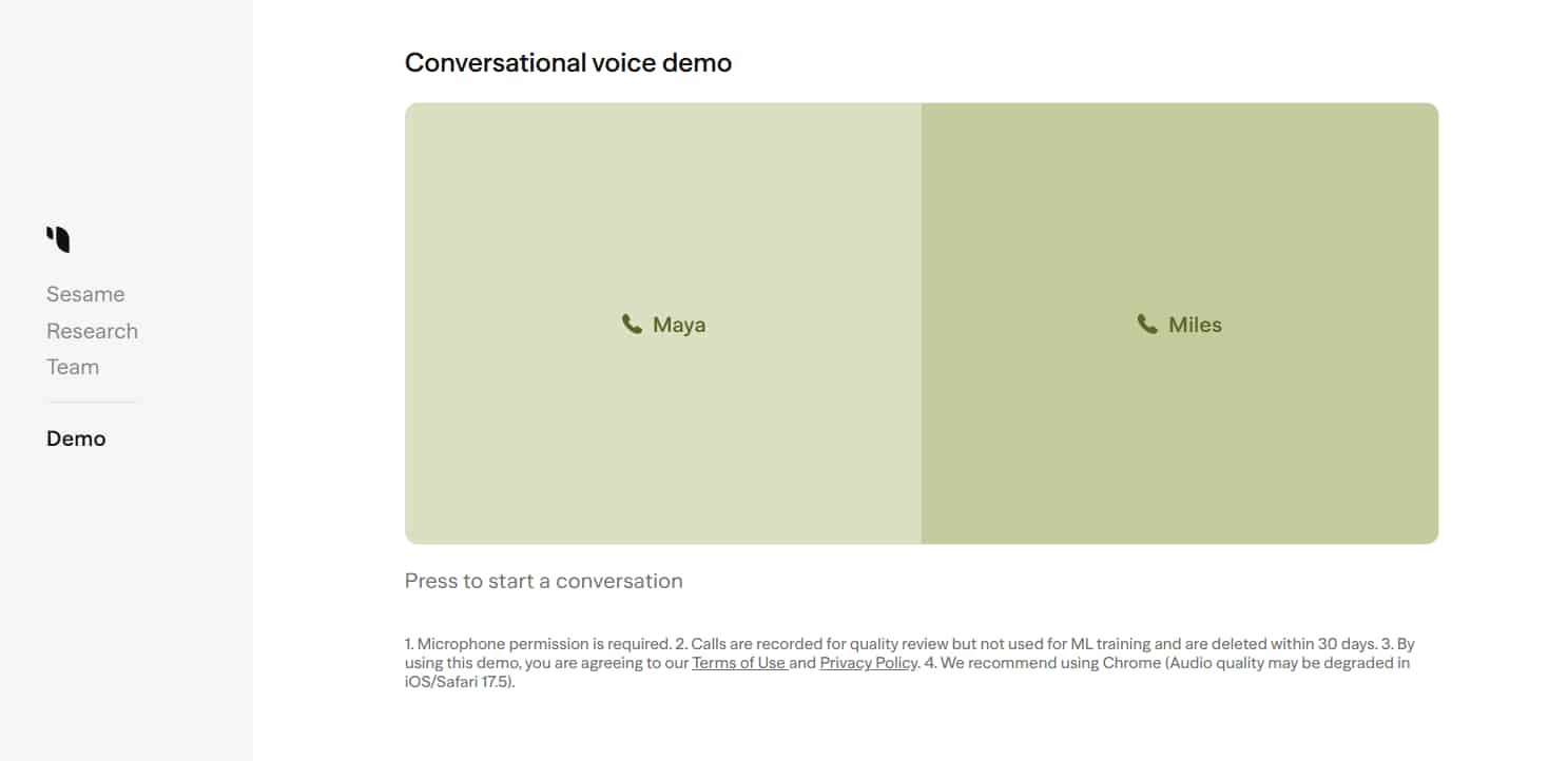As I do a daily catch up on the latest AI news, I was introduced to the conversational bot by Sesame AI, which was really impressive with the way it mimics human speech. Despite having the limitations to just chat with the bots for 30mins per call, I spent at least an hour, talking to this latest AI-conversation model, it has the most human sounding voice with the “erms, uhs, etc” , well not all the time it generates perfect pauses, it can detect a level sarcasm, it unable to detect how loud or soft I am. I even tried to role play a situation where I’m in danger and need it to speak softly without exposing my location. It was unable to do that, as it proceeded with its usual voice level.
